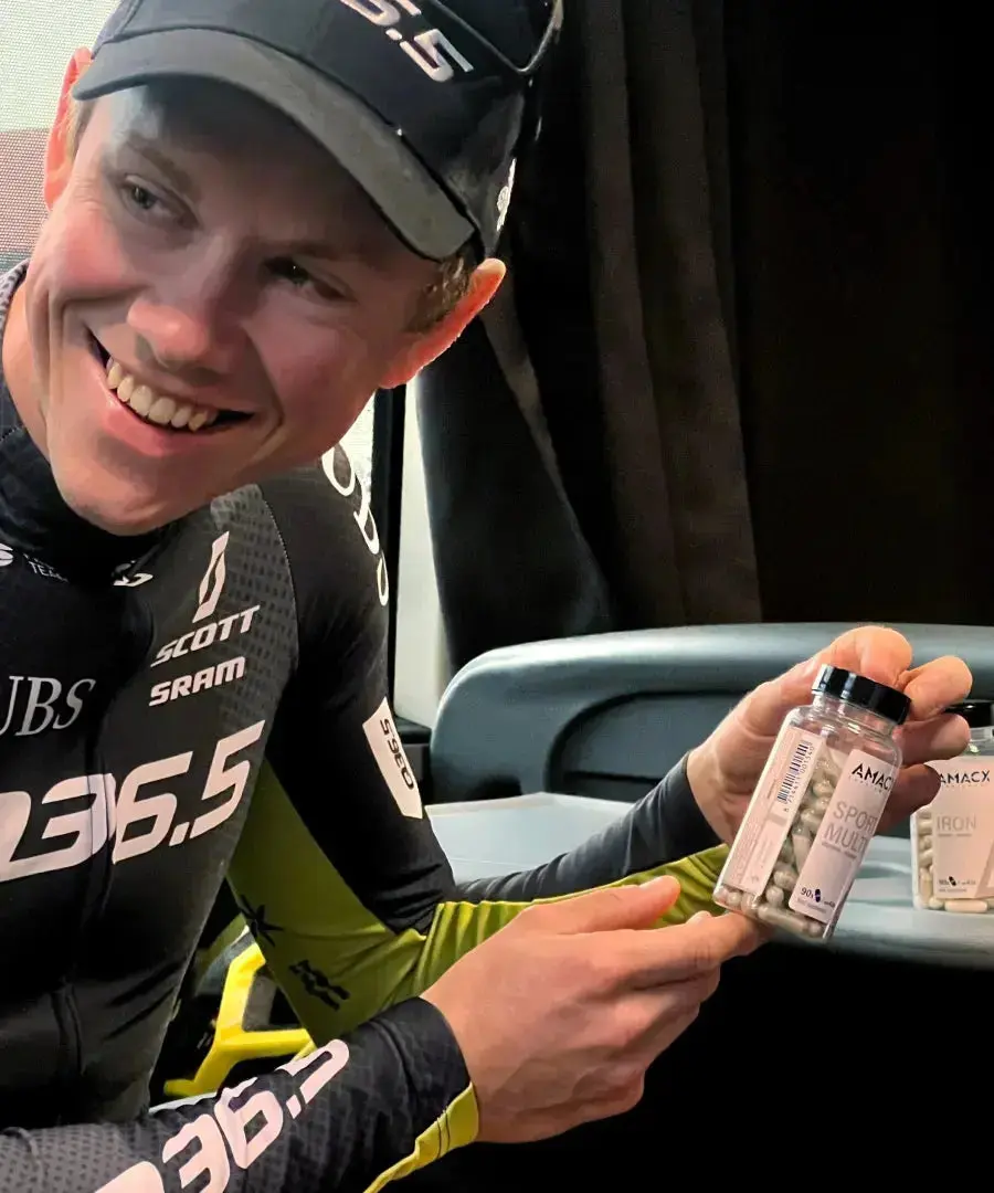 Amacx Sport Multi is een zorgvuldig samengestelde multivitamine die is afgestemd op de dagelijkse behoefte van actieve sporters. De formule bevat een brede mix van vitamines en mineralen die bijdragen aan verschillende lichaamsfuncties, vooral rondom energie, herstel en weerstand.