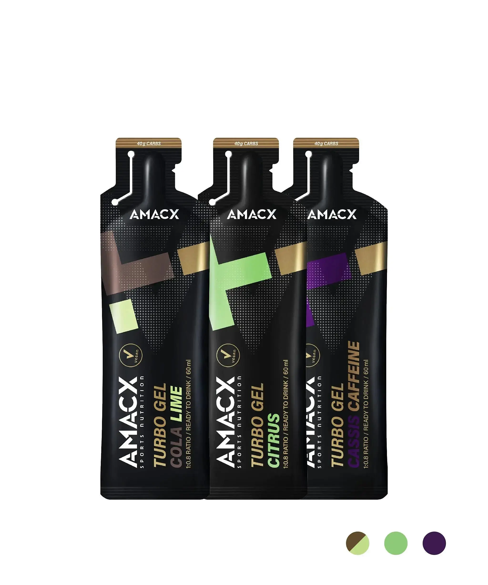 De Amacx Turbo Gel is een kant-en-klare sportgel met 40 gram koolhydraten per portie (60 ml), samengesteld in een 1:0.8 verhouding van glucose tot fructose. Deze gel is handig in gebruik en hoeft niet met extra water te worden ingenomen.